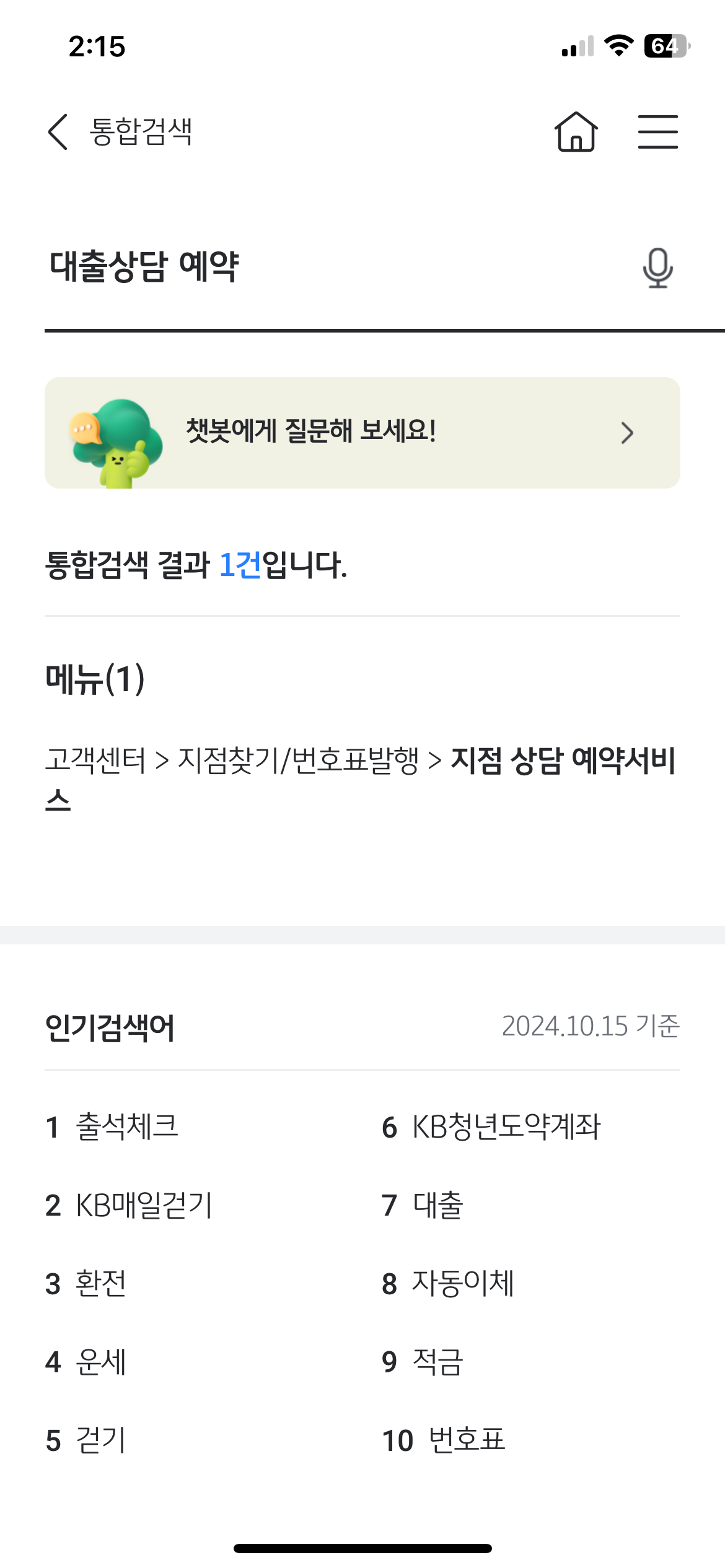 2. 우측상단의 돋보기 클릭하여 지점 상담 예약 입력