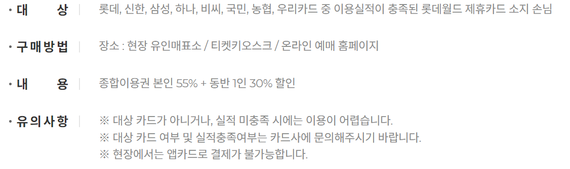 일반혜택, 카드혜택, 멤버식혜택 모두 확인하여 롯데월드로 놀러오세요~