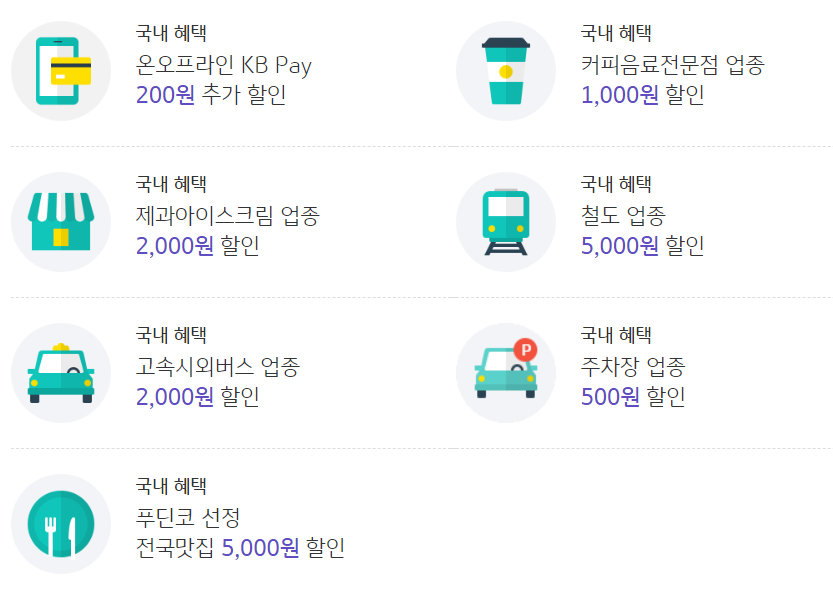 국민 트레블 체크카드의 국내 이용 주요 혜택은 다음과 같습니다.