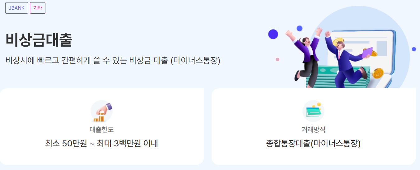 두 번째 소개할 대출은 제주은행 비상금 대출입니다.