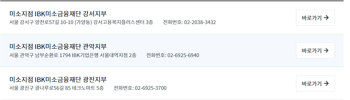 버튼을 클릭하면 위와 같이 내 주변 미소지점 연락처를 검색하실 수 있습니다.