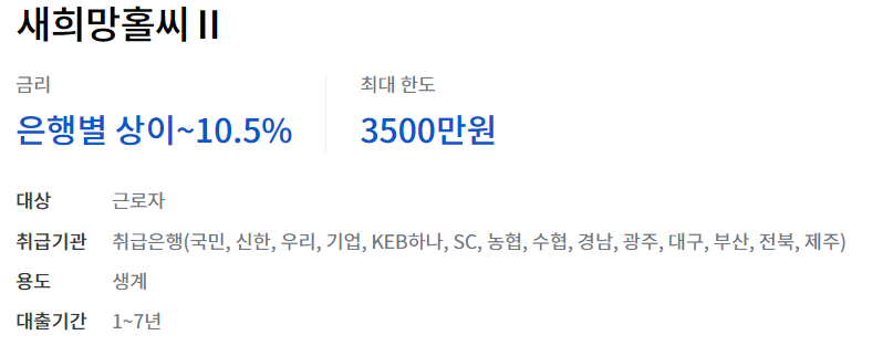 새 희망홀씨는 소득이 낮고 신용 점수가 낮아 은행 대출이 힘든 저소득 계층을 위해 은행에서 별도의 심사기준으로 대출해 주는 제 1금융 은행의 대표적인 서민 맞춤형 대출상품입니다.