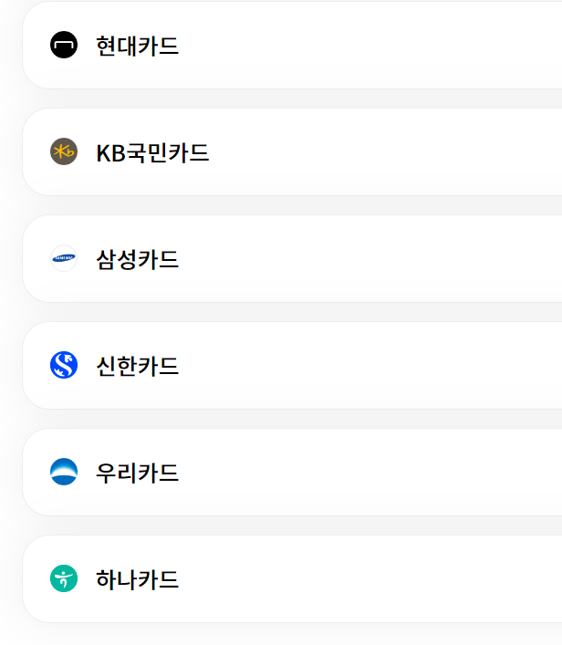 신청가능 카드사는 아래와 같습니다